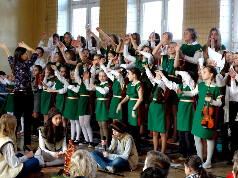 W przedstawieniu wzięła udział młodzież szkolna z różnych klas. Całość przedsięwzięcia mocno wspierał chór szkolny prowadzony przez panią Agnieszkę Jakubiak.