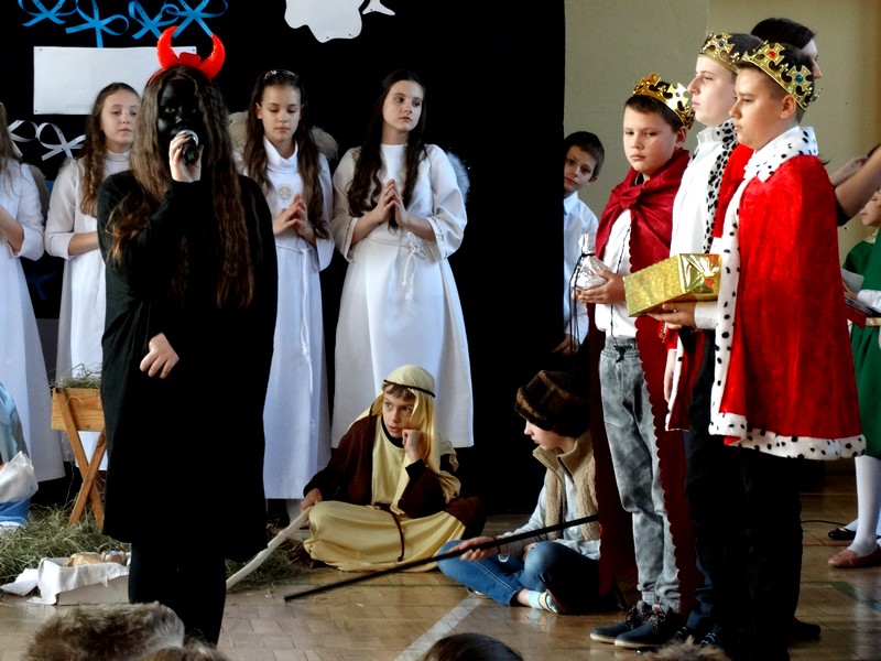 W przedstawieniu wzięła udział młodzież szkolna z różnych klas. Całość przedsięwzięcia mocno wspierał chór szkolny prowadzony przez panią Agnieszkę Jakubiak.