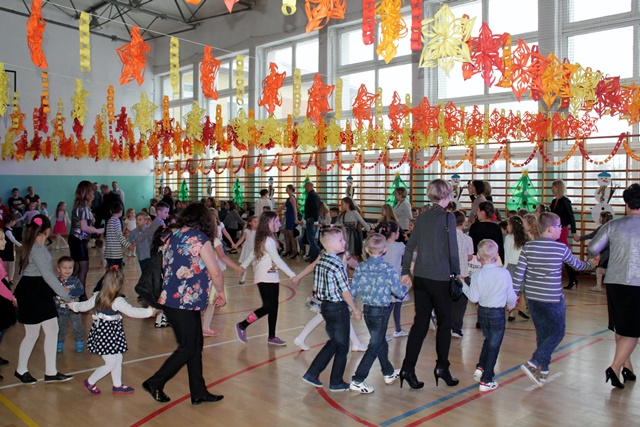 Choinka jak zwykle była wielkim przeżyciem dla najmłodszych uczniów. Wszyscy uczestnicy noworocznej zabawy zabrali ze sobą świetne humory i dali się porwać wesołym rytmom.