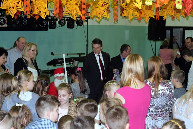 Choinka jak zwykle była wielkim przeżyciem dla najmłodszych uczniów. Wszyscy uczestnicy noworocznej zabawy zabrali ze sobą świetne humory i dali się porwać wesołym rytmom.