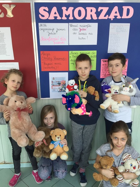 Apteczka pierwszej pomocy psychologicznej - taką rolę pełnią misie, które zostały zebrane przez Mały Samorząd Uczniowski Szkoły Podstawowej nr 1.