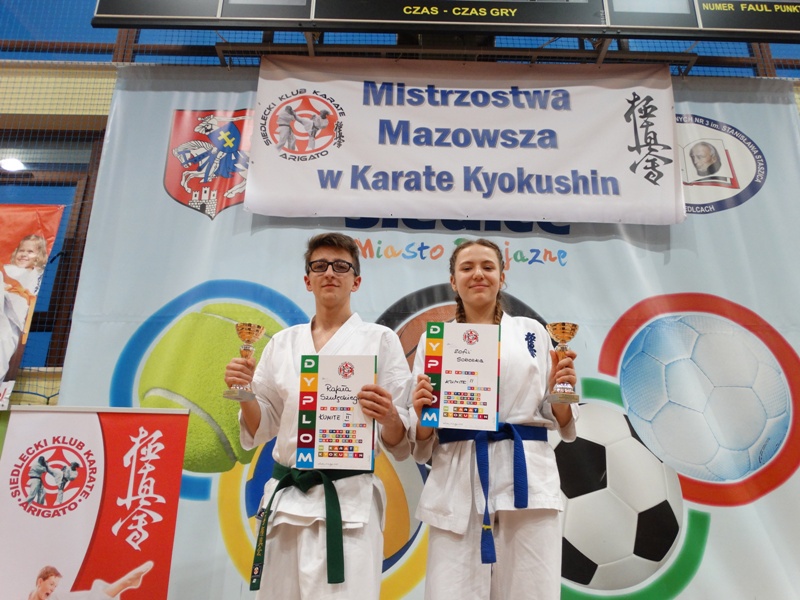 Rafał Szulecki i Zofia Sobotka reprezentanci BKKK wywalczyli srebrne medale i tytuły wicemistrza Mazowsza na Mistrzostwach Mazowsza Młodzików i Juniorów Młodszych w Karate Kyokushin.