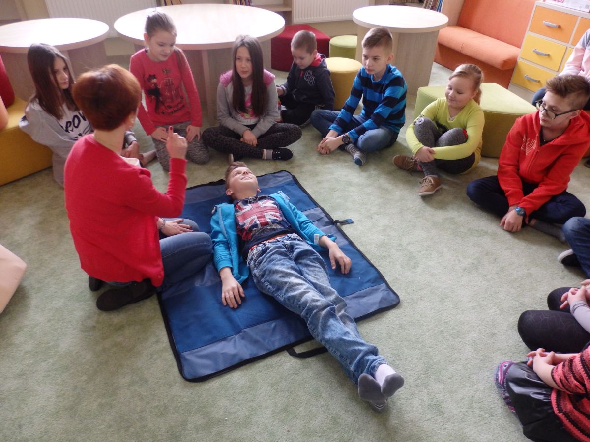 Podczas ferii dzieci uczestniczyły m.in. w zajęciach teatralnych, zabawach ruchowych przy muzyce z chustą animacyjną oraz zajęciach sportowych.