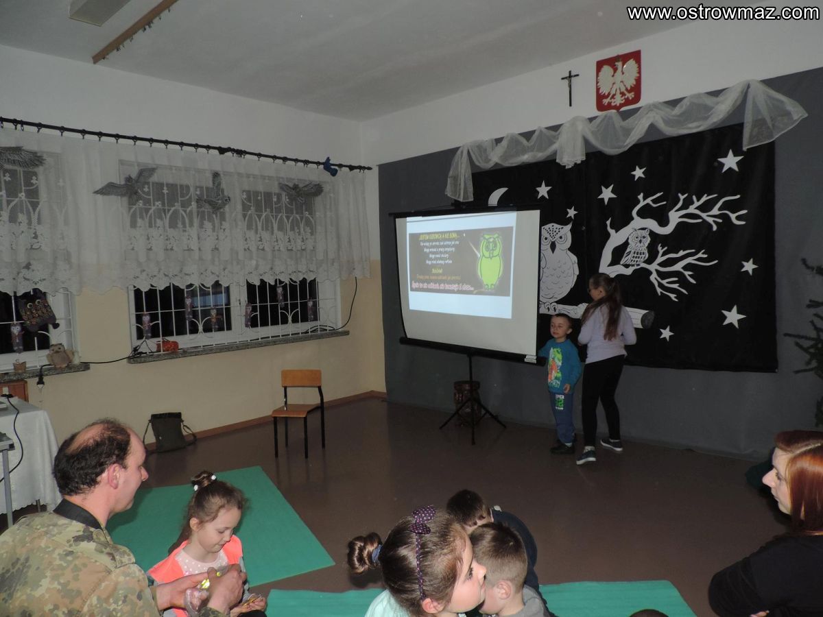 Na wydarzenie Nocy Sów do Szkoły Podstawowej w Tymiankach-Buciach przybyło 68 gości oraz płomykówka i puszczyk.