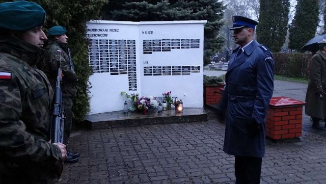 Obchody Dnia Pamięci o Ofiarach Zbrodni Katyńskiej rozpoczęły się pod Komendą Powiatową Policji w Ostrowi Mazowieckiej przy Pomniku Pomordowanych Policjantów II RP.