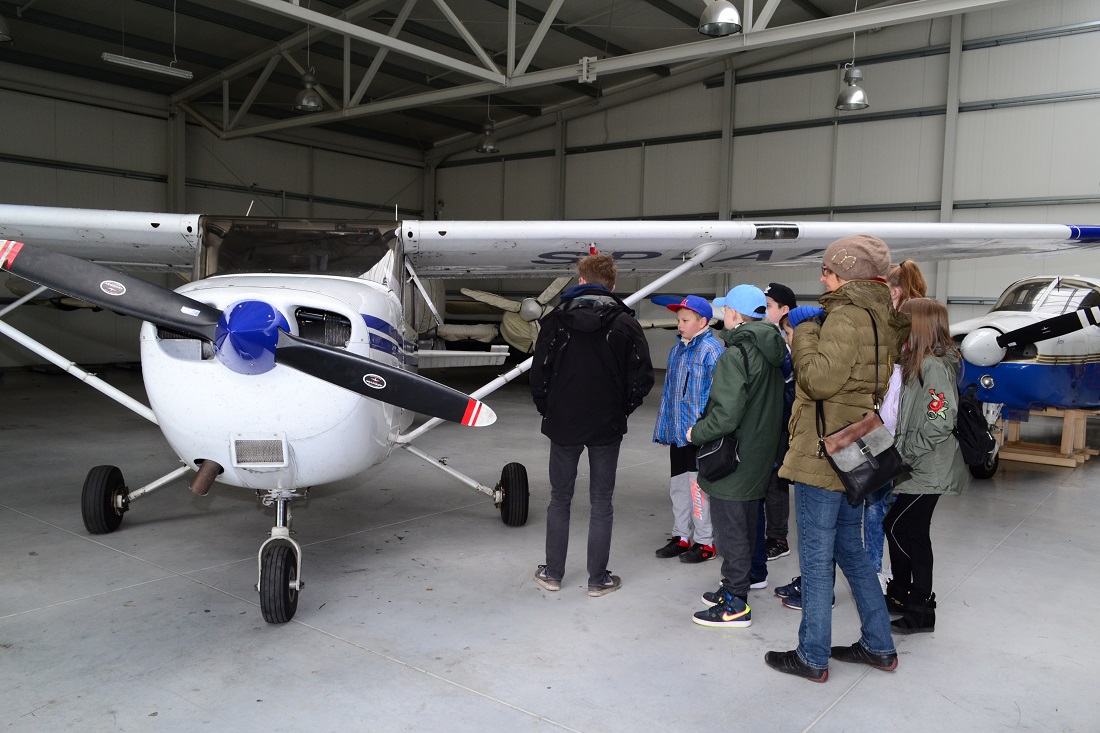 Uczniowie klas IV, V i VI z Zespołu Publicznych Placówek Oświatowych w Broku udali się na wycieczkę na lotnisko Grądy zorganizowaną przez Bibliotekę Publiczną w Broku.