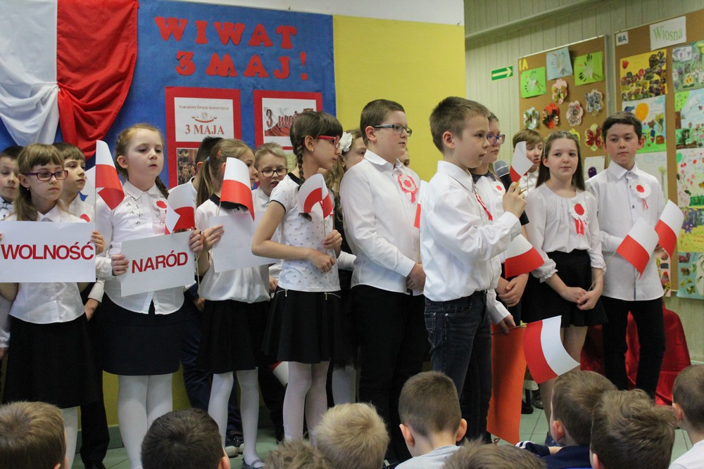 Dnia 28.04.2017 r. klasa III a wraz z wychowawczynią Anitą Pych zaprosiła dyrekcję szkoły, rodziców, nauczycieli oraz klasy I-III na uroczysty apel z okazji rocznicy uchwalenia Konstytucji 3 Maja.