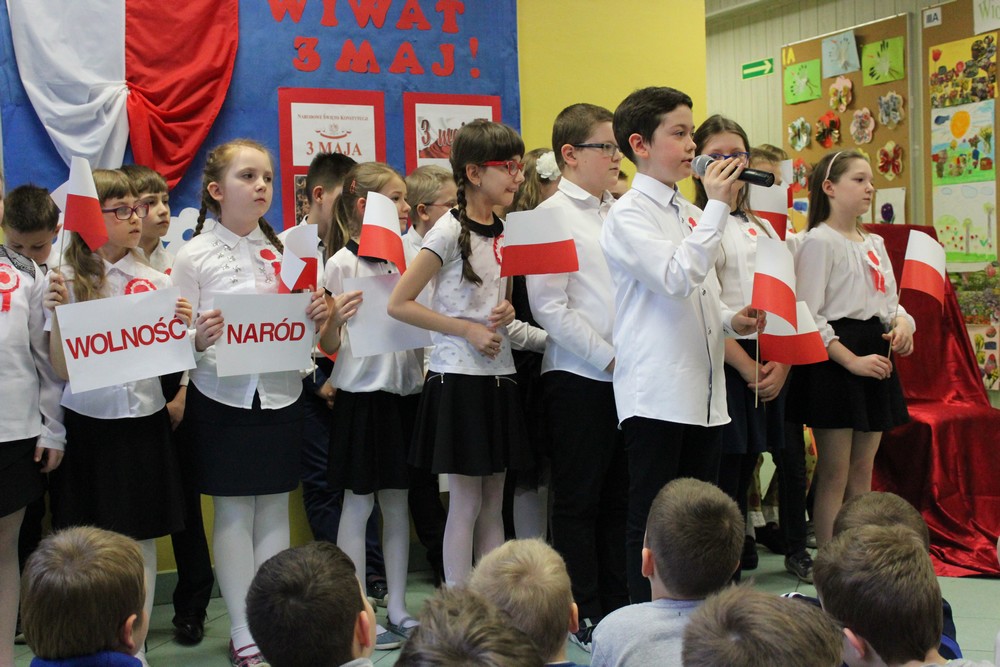 Dnia 28.04.2017 r. klasa III a wraz z wychowawczynią Anitą Pych zaprosiła dyrekcję szkoły, rodziców, nauczycieli oraz klasy I-III na uroczysty apel z okazji rocznicy uchwalenia Konstytucji 3 Maja.