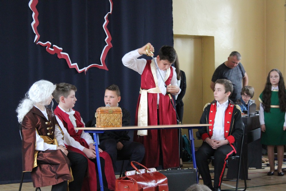 Uczniowie klasy VI b wraz z wychowawcą Emilią Kukwą przygotowali akademię poświęconą wydarzeniom, które przyczyniły się do uchwalenia pierwszej w Europie, a drugiej na świecie Konstytucji.