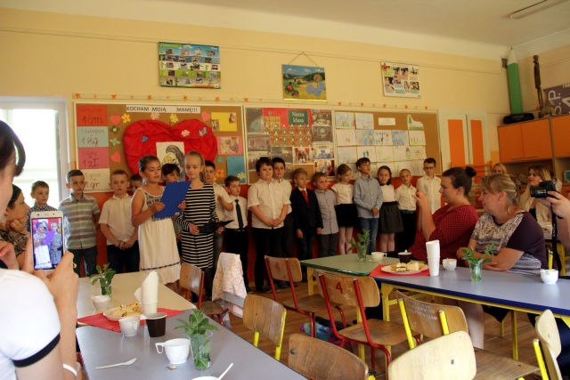 Uczniowie klasy II z ostrowskiej Czwórki, pod kierunkiem wychowawczyni Anny Grabowskiej uczcili Dzień Matki.