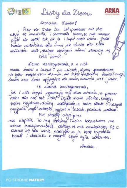 Gimnazjum Publiczne nr 1 po raz kolejny wzięło udział w akcji "Listy dla Ziemi".
