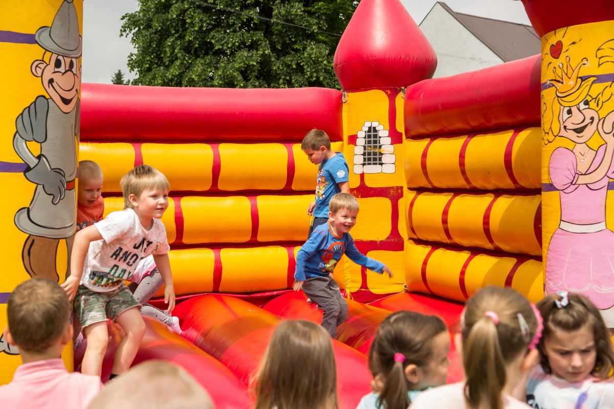 Dla przedszkolaków przygotowano ciekawe atrakcje w ogrodzie przedszkolnym. Były dmuchane zamki, zjeżdżalnie, statki i wiele innych niespodzianek w postaci gier i konkursów czy zabaw tanecznych. Na dzieci czekały również słodkości, owoce oraz zdrowe i smaczne soczki.