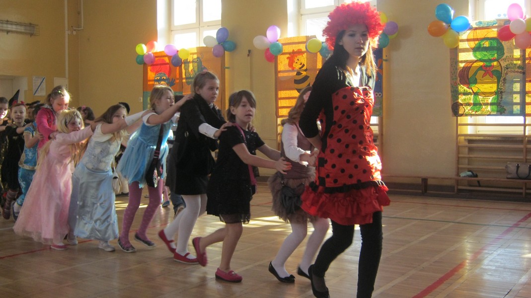 Uczniowie "Małej Jedynki" bawili się na balu karnawałowym. Zabawa odbyła się na sali gimnastycznej, a poprowadzili ją animatorzy Teatru Forma z Białegostoku.