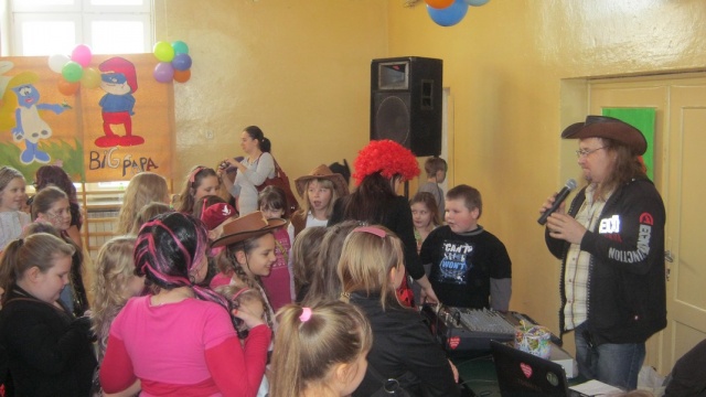 Uczniowie "Małej Jedynki" bawili się na balu karnawałowym. Zabawa odbyła się na sali gimnastycznej, a poprowadzili ją animatorzy Teatru Forma z Białegostoku.