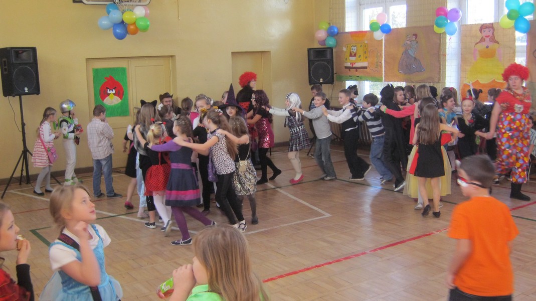 Uczniowie "Małej Jedynki" bawili się na balu karnawałowym. Zabawa odbyła się na sali gimnastycznej, a poprowadzili ją animatorzy Teatru Forma z Białegostoku.