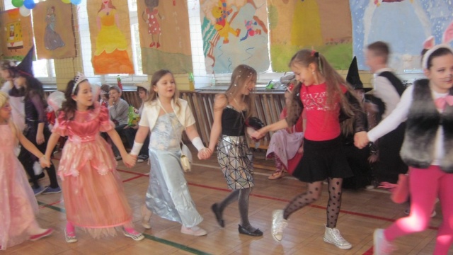 Uczniowie "Małej Jedynki" bawili się na balu karnawałowym. Zabawa odbyła się na sali gimnastycznej, a poprowadzili ją animatorzy Teatru Forma z Białegostoku.