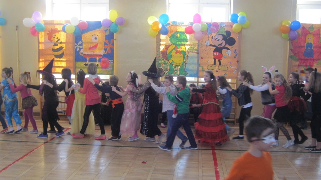 Uczniowie "Małej Jedynki" bawili się na balu karnawałowym. Zabawa odbyła się na sali gimnastycznej, a poprowadzili ją animatorzy Teatru Forma z Białegostoku.