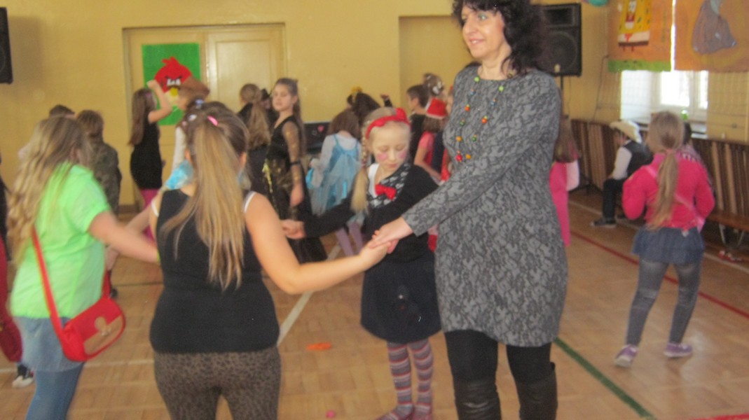 Uczniowie "Małej Jedynki" bawili się na balu karnawałowym. Zabawa odbyła się na sali gimnastycznej, a poprowadzili ją animatorzy Teatru Forma z Białegostoku.