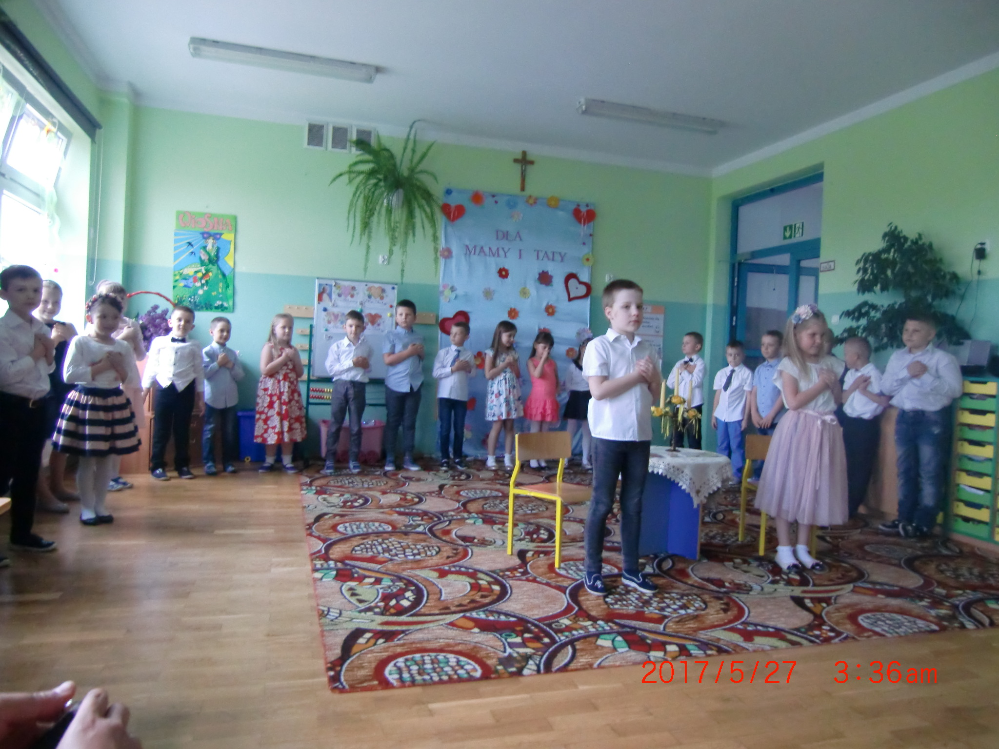 Podczas uroczystości rodzice z radością, wzruszeniem, zaciekawieniem i skupioną uwagą słuchali życzeń, wierszy, piosenek.