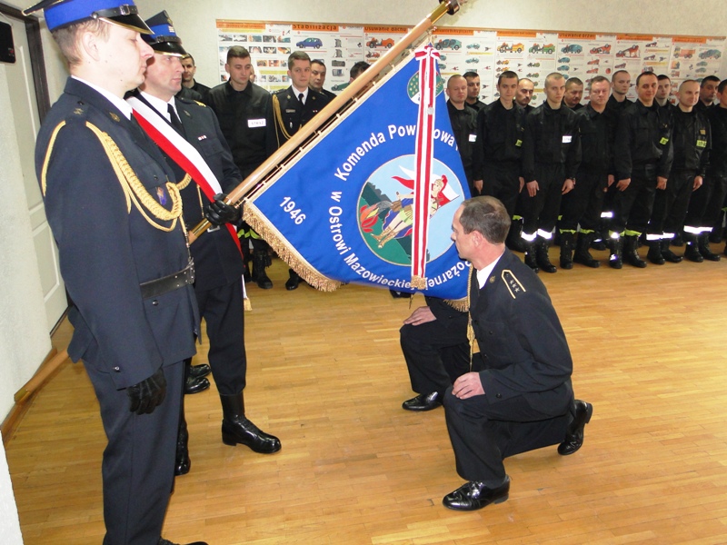 Podczas apelu nastąpiło uroczyste przejęcie przez st. kpt. Krzysztofa Gałązkę obowiązków Dowódcy Jednostki Ratowniczo - Gaśniczej w Ostrowi Mazowieckiej.