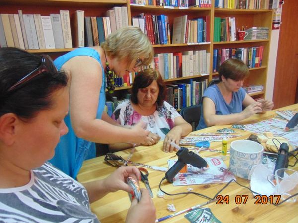 Ze starych gazet i odrobiny kleju powstawały różne przedmioty: podstawki, osłonki na doniczki czy koszyczki.
