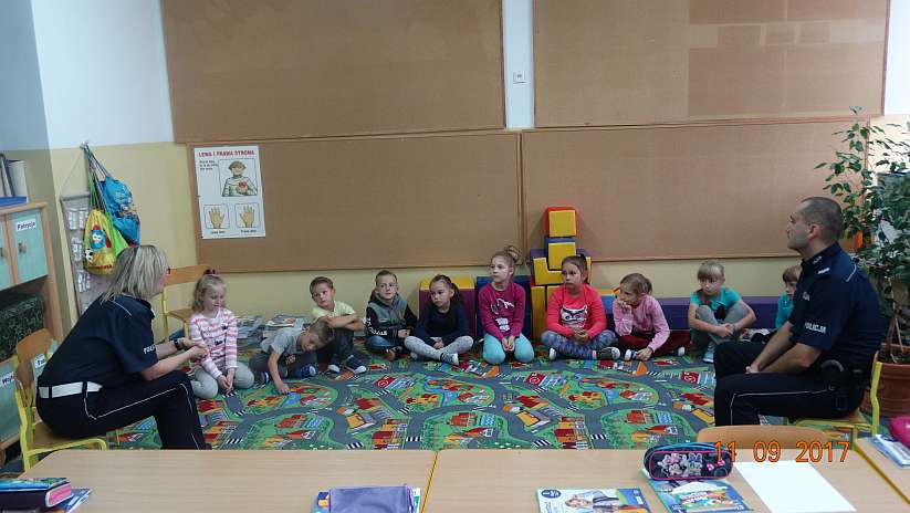 11 września ostrowscy policjanci odwiedzili pierwszoklasistów w Rząśniku Włościańskim oraz Brudkach Starych.