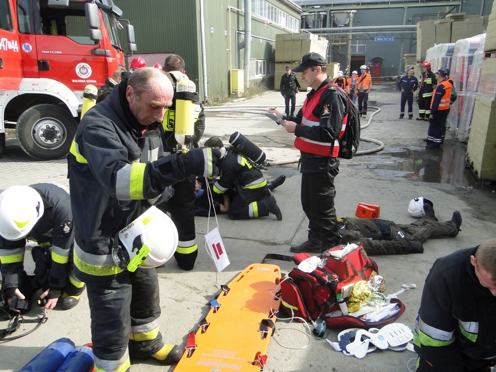 Ćwiczenia ratowniczo-gaśnicze z udziałem jednostek ochrony przeciwpożarowej z terenu powiatu ostrowskiego odbyły się 26 września 2017 na terenie zakładu produkcyjnego "ROCKWOOL POLSKA Sp. z o.o." w Małkini Górnej.
