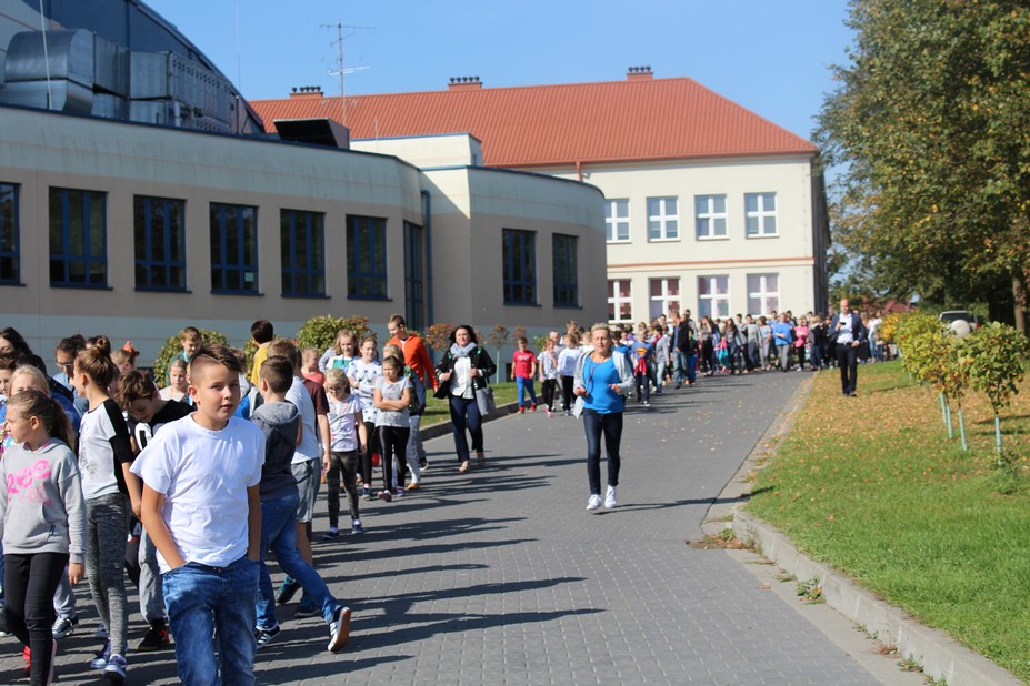 Zadanie próbnej ewakuacji wykonano w dniu 28 września 2017 r. "duża szkoła" i 2 października "mała szkoła". Sygnał do ewakuacji dał alarmowy 3 - krotny dzwonek szkolny o godzinie 12:00.