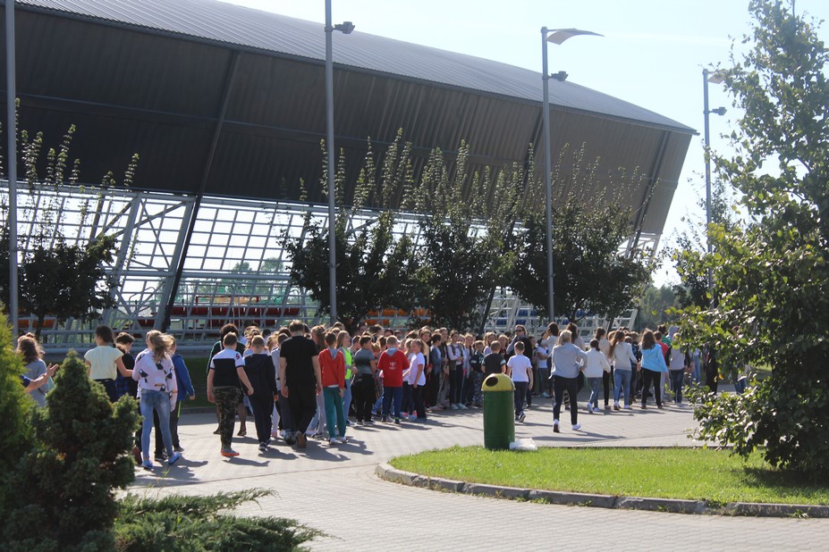 Zadanie próbnej ewakuacji wykonano w dniu 28 września 2017 r. "duża szkoła" i 2 października "mała szkoła". Sygnał do ewakuacji dał alarmowy 3 - krotny dzwonek szkolny o godzinie 12:00.