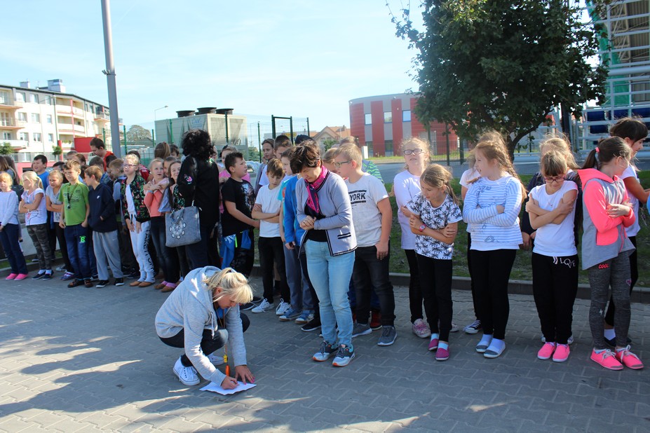Zadanie próbnej ewakuacji wykonano w dniu 28 września 2017 r. "duża szkoła" i 2 października "mała szkoła". Sygnał do ewakuacji dał alarmowy 3 - krotny dzwonek szkolny o godzinie 12:00.