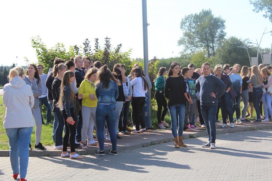 Zadanie próbnej ewakuacji wykonano w dniu 28 września 2017 r. "duża szkoła" i 2 października "mała szkoła". Sygnał do ewakuacji dał alarmowy 3 - krotny dzwonek szkolny o godzinie 12:00.