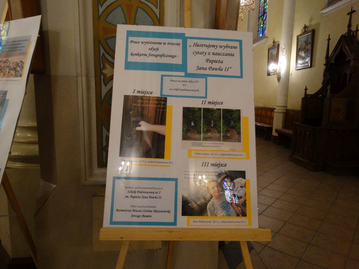 Rozstrzygnięto trzecią edycję konkursu fotograficznego: "Ilustrujemy wybrane cytaty z nauczania Papieża Jana Pawła II" zorganizowanego przez Szkołę Podstawową im. Papieża Jana Pawła II w Ostrowi Mazowieckiej z okazji XVII Dnia Papieskiego, pod patronatem Burmistrza Miasta Ostrów Mazowiecka Jerzego Bauera.
