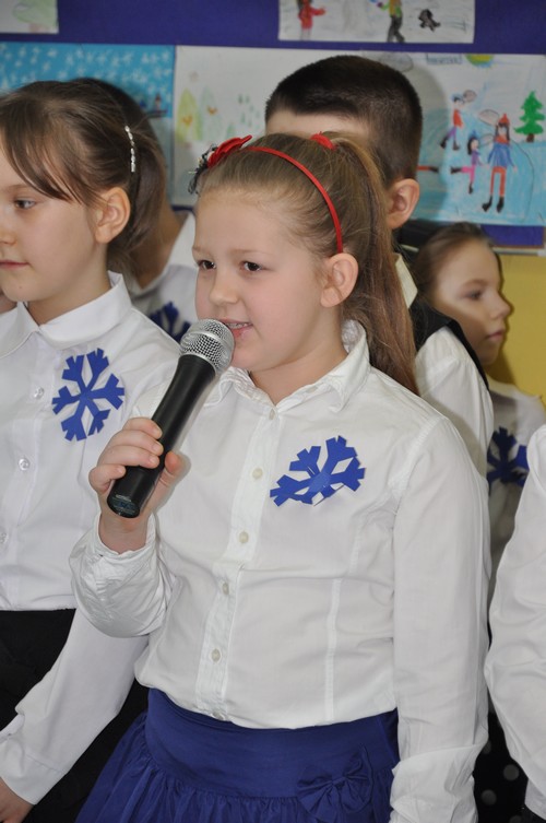 Uczniowie klasy Ic z wychowawczynią p. Katarzyną Krupińską zaprezentowali inscenizację nt. bezpiecznych zabaw zimowych. Uroczystość skierowana była do uczniów klas I-III.