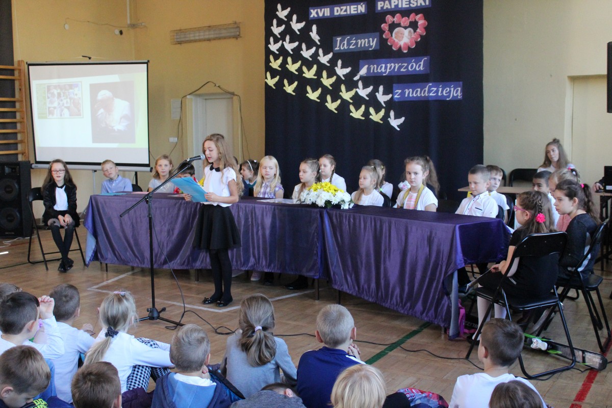 Uczniowie Szkoły Podstawowej nr 1 przypomnieli najważniejsze momenty z życia św. Jana Pawła II.