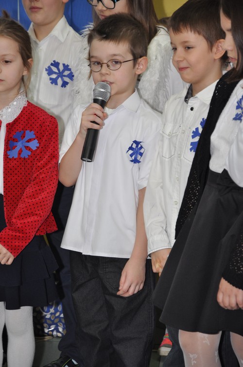 Uczniowie klasy Ic z wychowawczynią p. Katarzyną Krupińską zaprezentowali inscenizację nt. bezpiecznych zabaw zimowych. Uroczystość skierowana była do uczniów klas I-III.