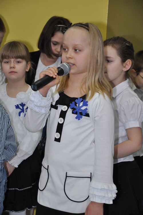 Uczniowie klasy Ic z wychowawczynią p. Katarzyną Krupińską zaprezentowali inscenizację nt. bezpiecznych zabaw zimowych. Uroczystość skierowana była do uczniów klas I-III.