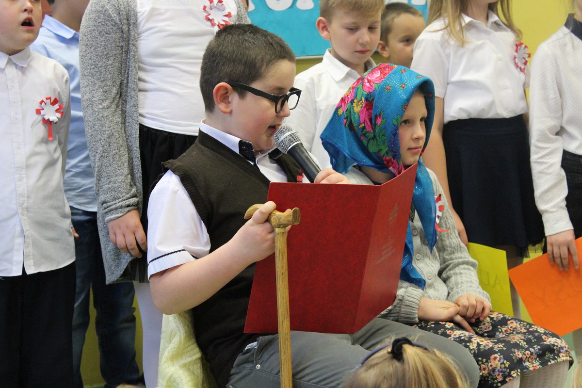 Dnia 9 listopada 2017 r. uczniowie klasy III e pod opieką wychowawczyni Katarzyny Sitek przygotowali apel dla uczniów klas I-III z okazji Narodowego Święta Odzyskania Niepodległości.