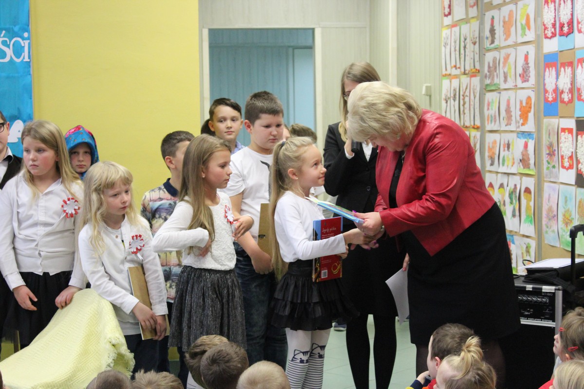 Dnia 9 listopada 2017 r. uczniowie klasy III e pod opieką wychowawczyni Katarzyny Sitek przygotowali apel dla uczniów klas I-III z okazji Narodowego Święta Odzyskania Niepodległości.