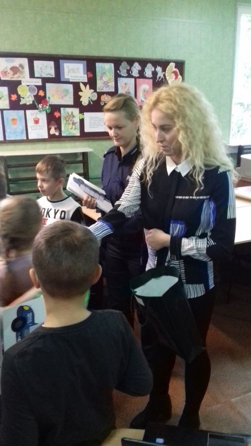 Dzieci ze szkoły w Prostyni odwiedziła dzielnicowa sierż. Monika Kaczyńska z przedstawicielkami Urzędu Gminy w Małkini Górnej.
