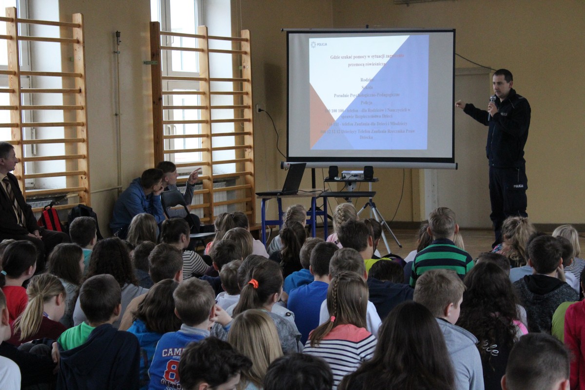 Podczas spotkania omówiono: odpowiedzialność karną nieletnich, zagrożenia w sieci i cyberprzemoc, jak przeciwdziałać przemocy rówieśniczej, w tym cyberprzemocy, odpowiedzialne i bezpieczne korzystanie z mediów społecznych, prawa dziecka.