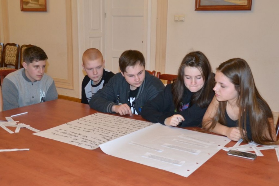 Spotkanie odbywa się w trzech grupach, prowadzi je Kacper Kempisty z Oddziałowego Biura Edukacji Narodowej IPN w Warszawie.