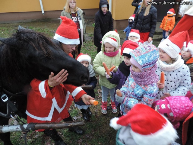 Zamiast sań - bryczka, zamiast renifera - koń. Mimo niesprzyjającej pogody szóstego grudnia 2017 r. Mikołaj w towarzystwie elfa odwiedził Punkt Przedszkolny "Słoneczko" przy Szkole Podstawowej w Kaczkowie Starym.