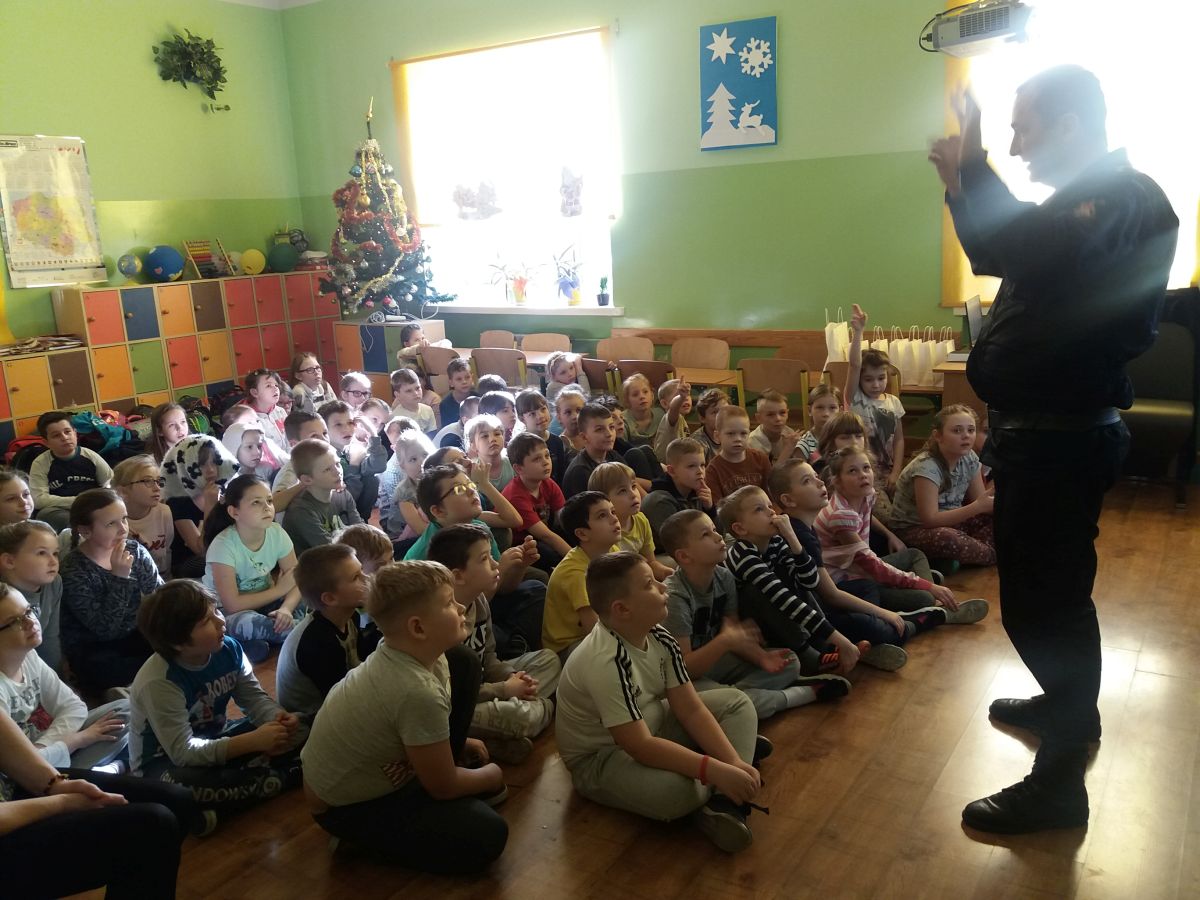 Uczniowie z klas I - III spotkali się z panią policjantką z KPP oraz panem strażakiem z PSP Ostrów Mazowiecka.