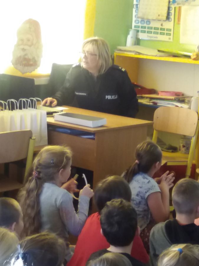 Uczniowie z klas I - III spotkali się z panią policjantką z KPP oraz panem strażakiem z PSP Ostrów Mazowiecka.