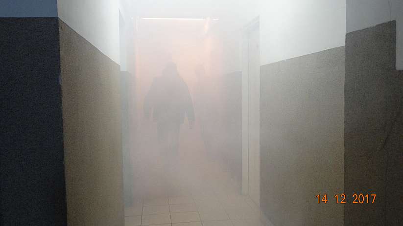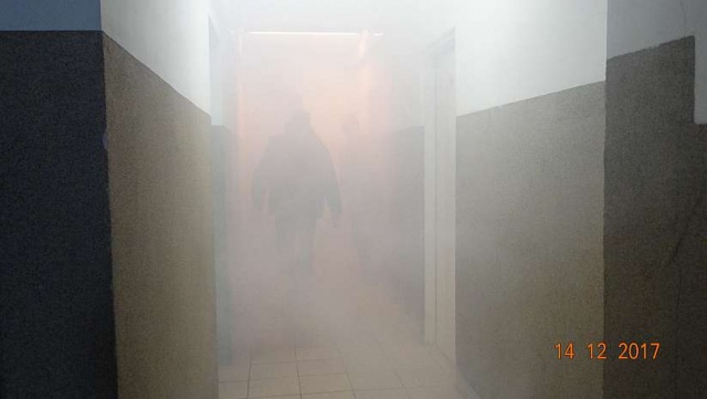 Straż pożarna przeszukała pomieszczenia i ewakuowała z budynku jedną osobę.