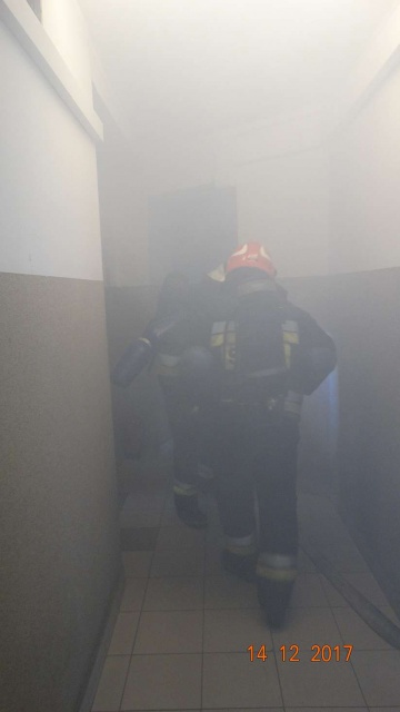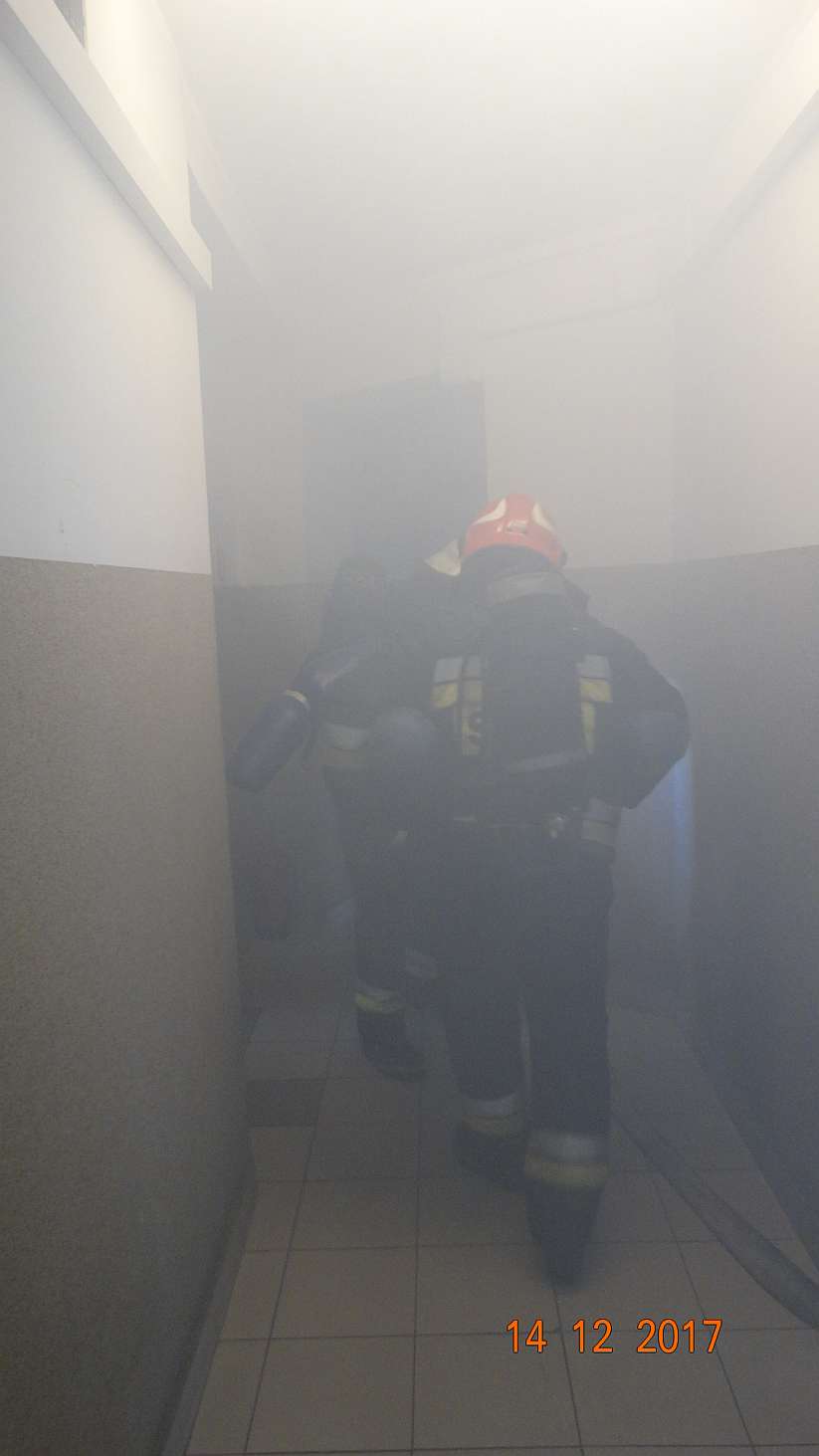 Straż pożarna przeszukała pomieszczenia i ewakuowała z budynku jedną osobę.