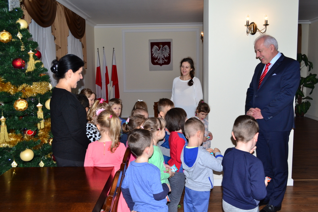 Grupa "Pszczółek" z Przedszkola Miejskiego w Broku, złożyła przedświąteczną wizytę Burmistrzowi Miasta i Gminy Brok Markowi Młyńskiemu.