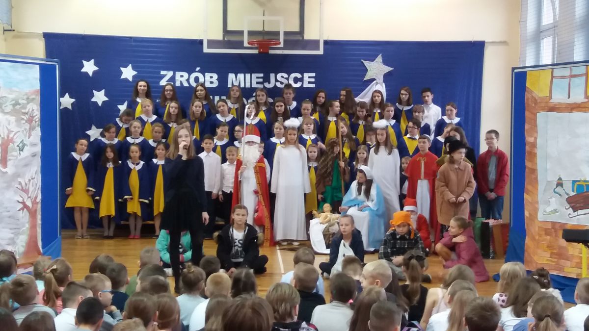 W świąteczną atmosferę wprowadzili zebranych uczniowie klasy V, którzy wraz z chórem przygotowali przedstawienie jasełkowe.