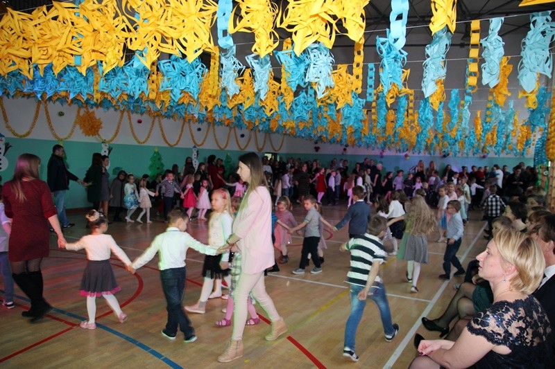Choinka jak zwykle była wielkim przeżyciem dla najmłodszych uczniów. Wszyscy uczestnicy noworocznej zabawy zabrali ze sobą świetne humory i dali się porwać wesołym rytmom.