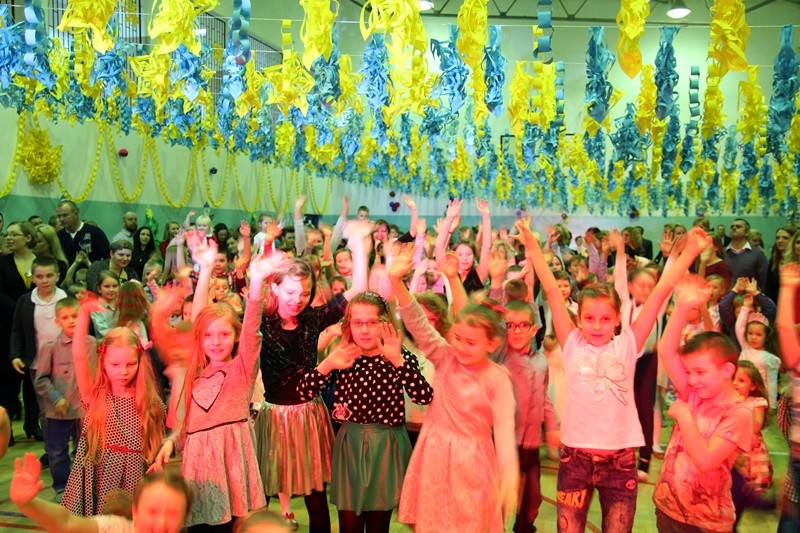 Choinka jak zwykle była wielkim przeżyciem dla najmłodszych uczniów. Wszyscy uczestnicy noworocznej zabawy zabrali ze sobą świetne humory i dali się porwać wesołym rytmom.